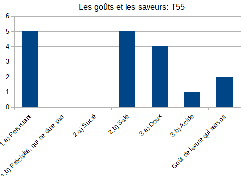 De la même manière, les testeurs ont jugé les pains à taux plus élevés plus doux, donc moins acides. C’est cohérent car plus il y a du sucre dans un mélange et moins ce mélange est acide. Par contre, les types faibles sont considérés comme « ayant le goût de levure » par certaines personnes et le T150 comme « n’ayant pas assez de sel » et « friable ».