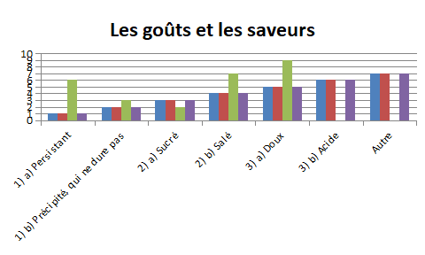 À l’instar « des odeurs et des arômes », « les goûts et les saveurs » seront forcément modifiés à cause de la congélation des pains. Ainsi, après congélation la veille, plus le taux de minéraux est élevé et plus les goûts et les saveurs seront persistants visiblement. Sauf pour le T80 qui a été considéré davantage « précipité » que tous les autres pains.