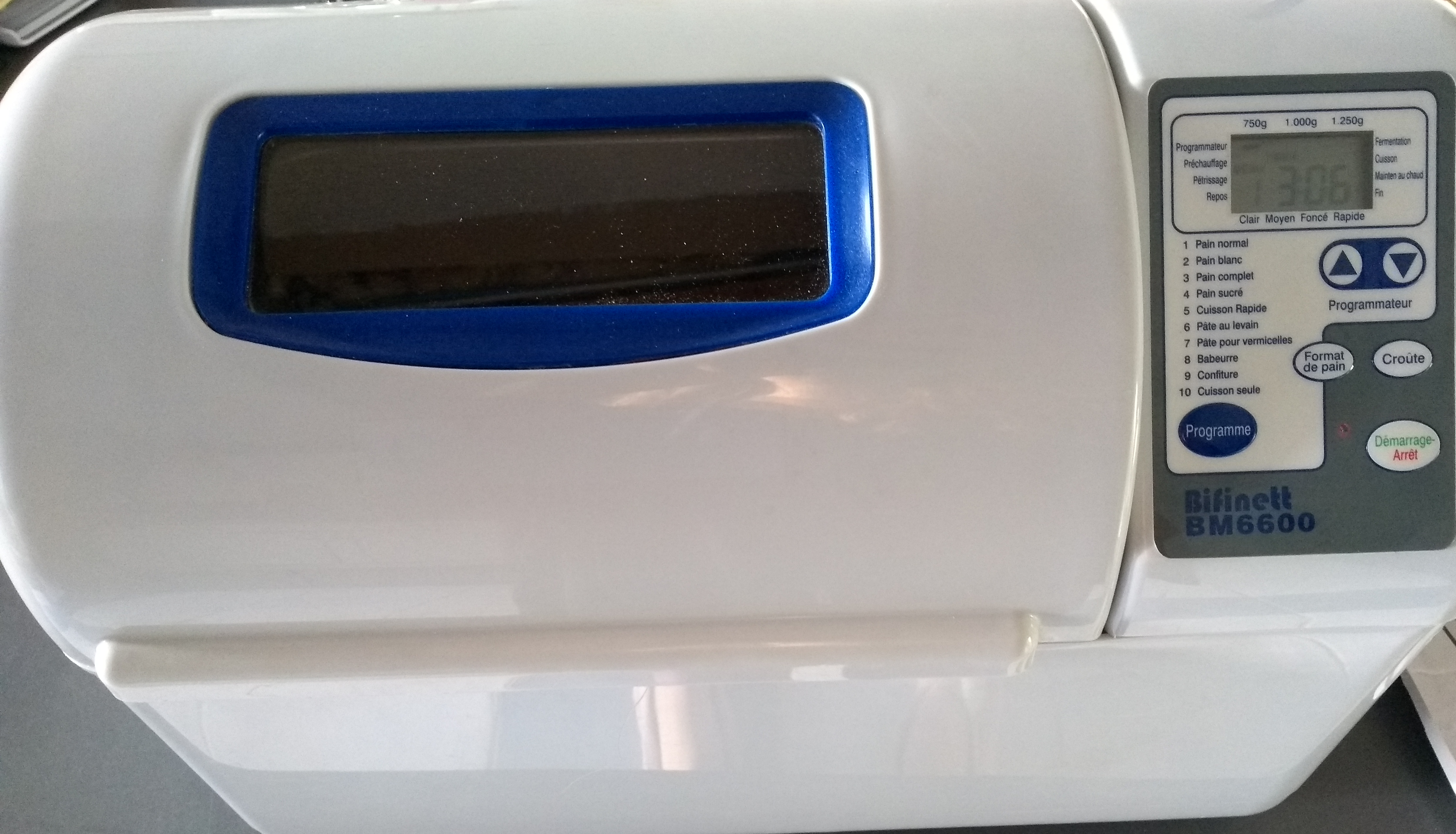 Pour réaliser ce sondage, nous avons du confectionner les 6 pains aux farines de blé choisies à l’aide de deux machines à pain (le choix de 2 machines par question de temps de préparation) pour conserver une certaine régularité. La seconde constante résultait en notre choix d’une recette unique pour les 6 pains aux types de farines de blé différents.